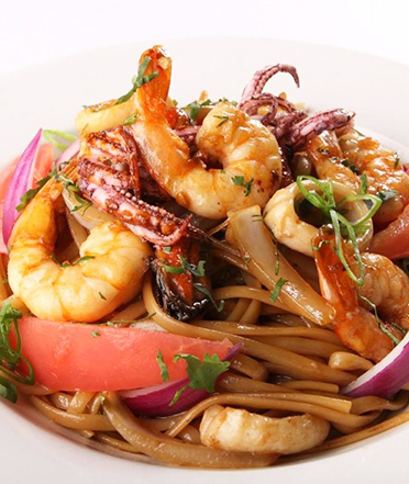 Tallarin saltado con mariscos